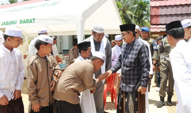 Kegiatan ini dirangkaikan dengan Walimah Safar Haji H. Zakaria Ansori serta Halal Bihalal yang digelar di Pondok Pesantren As Syatibi, Jalan Syekh Ustman, Desa Tungkal I, Sabtu (04/04/2026).