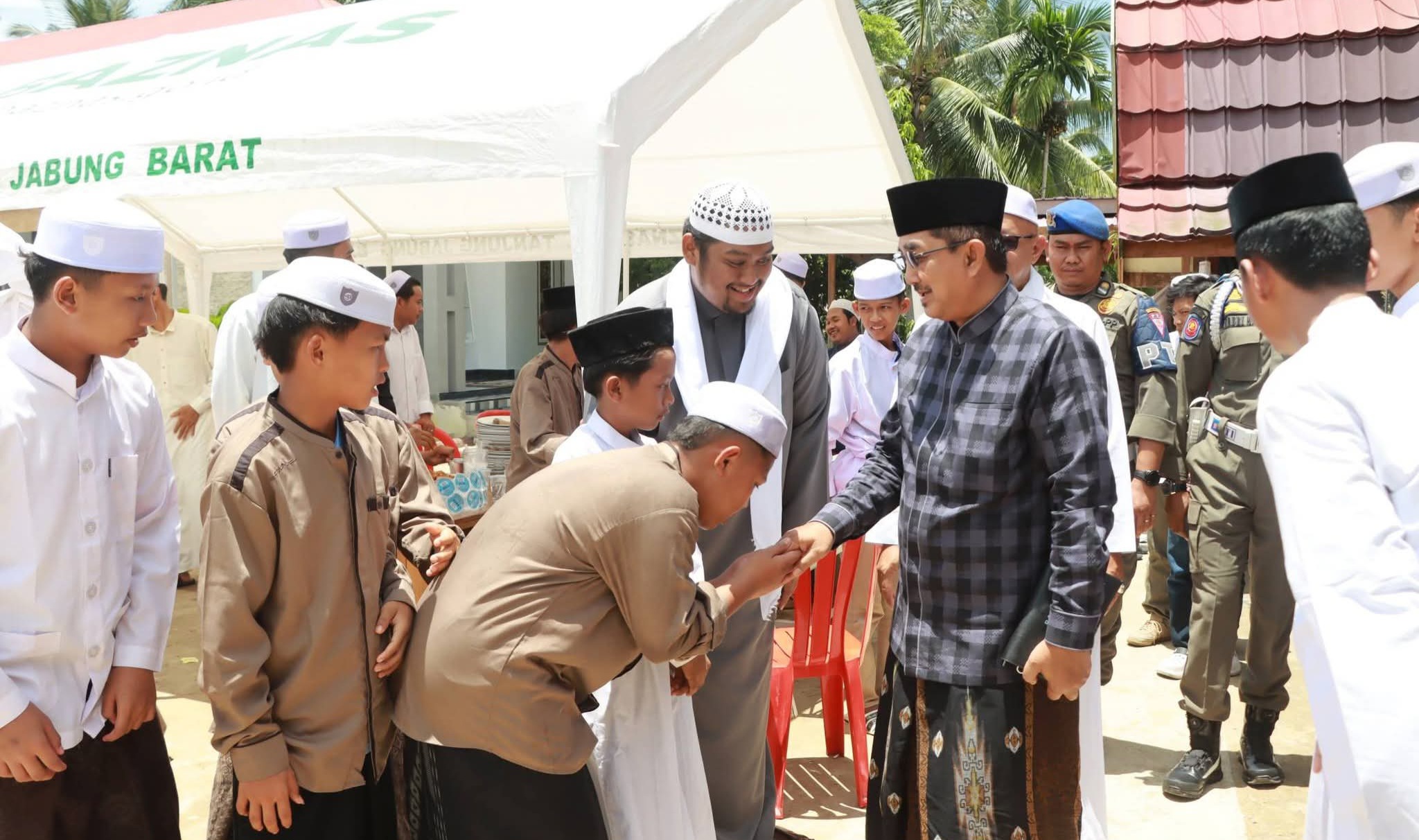 Bupati Tanjung Jabung Barat, Drs. H. Anwar Sadat, M.Ag., yang hadir langsung dalam kesempatan tersebut, menyampaikan rasa duka mendalam atas kepergian almarhum.
